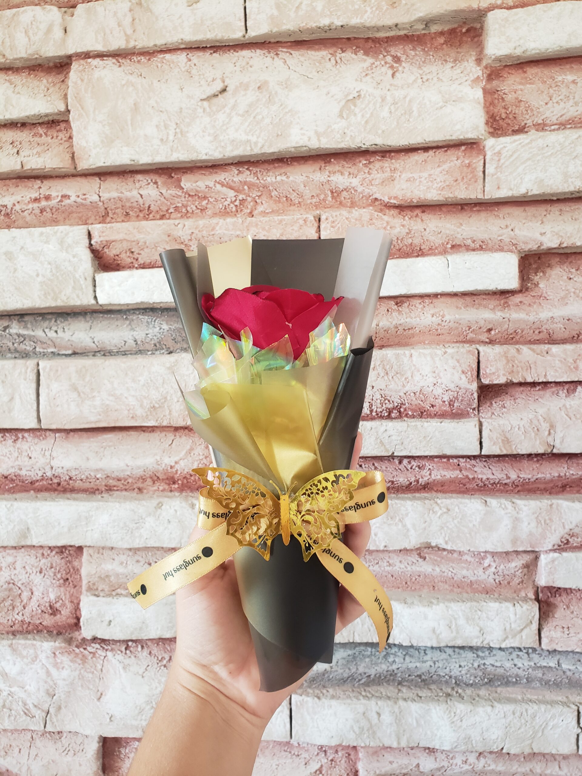 Ramo sencillo y elegante con una sola rosa de satín, elaborada a mano con delicado detalle. Ideal como gesto simbólico de amor, gratitud o recuerdo. Disponible en el color que prefieras para transmitir belleza en su forma más pura.