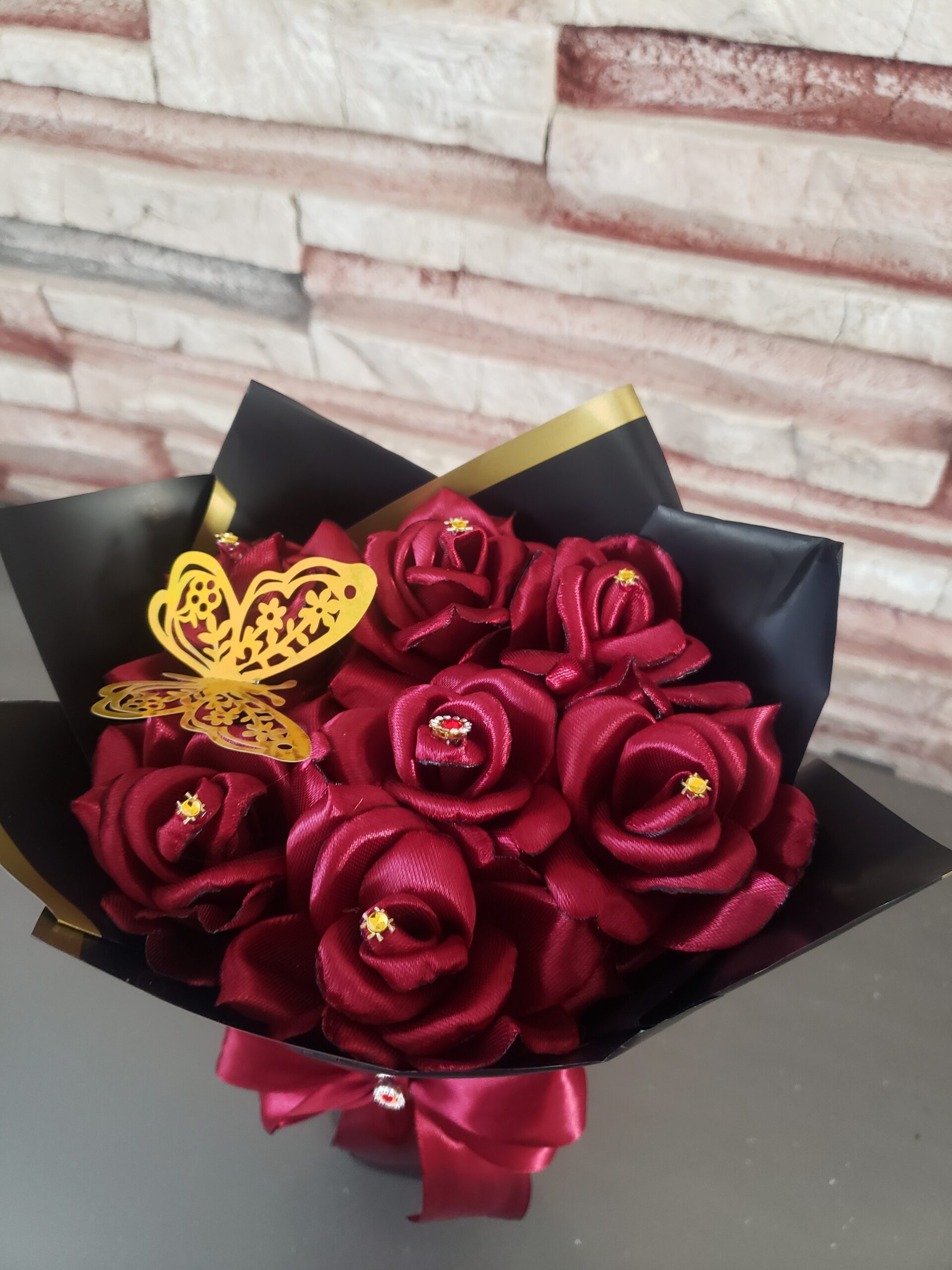 Ramo artesanal compuesto por 7 rosas de satín, delicadamente elaboradas a mano. Disponible en el color que elijas, ideal para expresar elegancia y sentimientos duraderos sin marchitarse. Perfecto para regalos, decoraciones o detalles especiales.